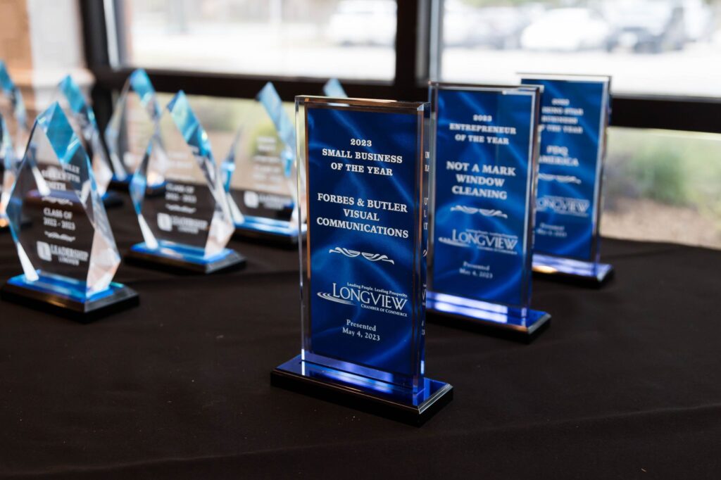 The Small Business Awards recognizes remarkable small businesses in the Longview trade area. The award winners demonstrates success through sales and profit, potential for long-term success, their commitment to the community along with several others measurements. The award winners set a great example for other small business in the community through their achievements and contributions to the community. The annual awards are held in May.